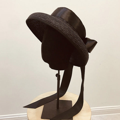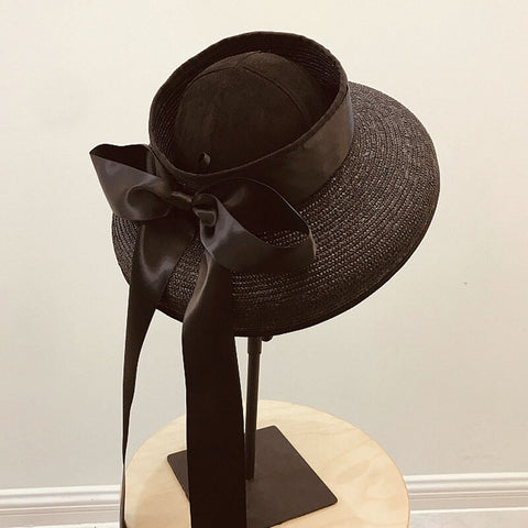 Wide Brim Straw Beach Hat with Long Ribbon Bow